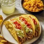 One-Pan Chicken Flautas feature tender shredded chicken seasoned with aromatic spices and sautéed onions, rolled in flour tortillas, pan-fried to a golden crisp, and served with fresh toppings like pico de gallo, sour cream, and guacamole. This easy-to-make Mexican-Tex Mex main dish offers a flavorful and satisfying meal perfect for any occasion.