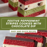 Peppermint Stripes Cookies are festive, colorful treats perfect for holiday gatherings. These crisp, layered cookies combine peppermint flavor with a hint of chocolate, making them a delightful and visually appealing dessert.