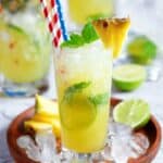 - Serve and Garnish: Garnish each glass with fresh mint sprigs, lime wedges, and pieces of fresh pineapple to enhance the presentation and aroma. Serve immediately for the best refreshing experience.