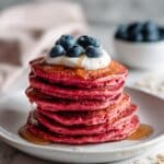 Delightfully colorful and nutritious Pink Beet Pancakes made with wholesome rolled oats, fresh beets, and naturally sweetened with applesauce and maple syrup. These pancakes are fluffy, vibrant, and perfect for a healthy breakfast that serves 10 people.