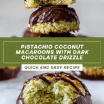 Pistachio Coconut Macaroons are a delightful blend of nutty pistachios and sweet coconut, complemented by a rich dark chocolate coating. These chewy, delicate treats are perfect for a special occasion or a satisfying homemade snack.