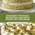 Keywords: Pistachio Dacquoise Cake, French buttercream, meringue cake, pistachio dessert, elegant cake recipe