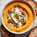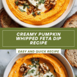 This Pumpkin Whipped Feta Dip is a creamy, tangy, and slightly sweet spread perfect for fall gatherings. Blending feta cheese with creamy pumpkin puree, Greek yogurt, honey, and thyme creates a unique and flavorful appetizer that pairs wonderfully with crusty bread or crackers. Its luscious texture and seasonal flavors make it a crowd-pleasing dip to enjoy chilled.