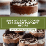 Cookies and Cream Parfaits are a quick and delicious no-bake dessert perfect for any occasion. With layers of rich chocolate pudding, Oreo mousse, and fluffy whipped cream, these parfaits combine texture and flavor effortlessly. They’re simple to assemble and always impress guests.