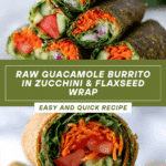 This Raw Guacamole Burrito in Zucchini & Flaxseed Wrap is a delicious, vegan, and gluten-free wrap that combines vibrant raw Mexican flavors with wholesome, nutrient-dense ingredients. Featuring a creamy guacamole filling wrapped in a unique, fresh zucchini, apple, and flaxseed crust, this burrito offers a refreshing, healthy alternative to traditional wraps. Perfect for those who value raw, unprocessed, and plant-based meals, it’s an ideal choice for a quick lunch or light dinner packed with flavor and nutrition.
