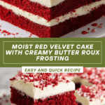Keywords: red velvet cake, butter roux frosting, classic cake, moist red velvet, homemade frosting, cake baking