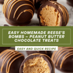 Reese’s Bombs are a delightful homemade treat featuring a creamy peanut butter center coated in rich chocolate. They offer a perfect balance of sweet and salty, making them an irresistible snack for peanut butter and chocolate lovers alike. Ready in under an hour, they’re simple to prepare and a great way to satisfy your sweet tooth.