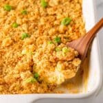 - Apply Topping: Evenly spread the buttered cracker and cheese mixture over the top of the casserole in the baking pan.