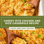 - Step 8: Remove from oven and let cool slightly before serving. Enjoy your delicious, creamy Ritz Chicken and Rice Casserole!