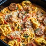 Keywords: crockpot tortellini sausage recipe, slow cooker cheese tortellini, easy Italian sausage dinner, creamy tortellini crockpot, one pot pasta sausage recipe