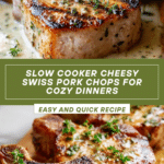 Savor the comforting blend of tender pork chops smothered in a creamy Swiss cheese and mushroom sauce with this Savory Alpine Cheese Delight recipe. Perfect for cozy dinners, this dish combines rich flavors and easy slow-cooking for a delicious, melt-in-your-mouth meal.