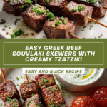 Keywords: Greek beef skewers, souvlaki, grilled beef, tzatziki sauce, Mediterranean recipe, beef marinade, summer grilling