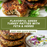 These Savory Greek Turkey Patties are a flavorful and healthy take on a classic dish, featuring lean ground turkey combined with fresh spinach, red onion, garlic, dill, oregano, and creamy feta cheese. Perfectly pan-seared to golden perfection, these patties make a delicious and vibrant meal that brings the authentic flavors of Greek cuisine to your table in just 23 minutes.