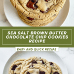 Keywords: brown butter cookies, sea salt chocolate chip cookies, chewy cookies, chocolate chip cookie recipe, browned butter dessert, homemade cookies
