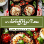 A flavorful and easy Sheet Pan Mushroom Parmigiana recipe featuring roasted portobello mushrooms filled with marinara sauce and melted mozzarella, topped with a crispy garlic panko breadcrumb mixture. Perfect for a quick, comforting vegetarian meal ready in just 40 minutes.