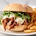 Slow Cooker French Dip Sandwiches are a delicious and effortless meal perfect for any night of the week. Tender chuck roast cooked low and slow with onions and spices creates juicy, flavorful beef that melts in your mouth. Serve on crusty bread with melted cheese and a side of savory au jus for dipping.
