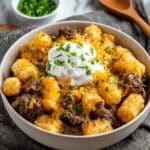 This Slow Cooker Steak and Cheddar Potato Casserole is a hearty, comforting dish perfect for an easy weeknight meal. Tender pieces of seared steak layered with sliced potatoes, onions, and garlic, all slow-cooked to perfection in a creamy, flavorful sauce made with beef broth, sour cream, Worcestershire sauce, and thyme. Finished with melted sharp cheddar cheese and a sprinkle of fresh parsley for a satisfying and delicious casserole experience.