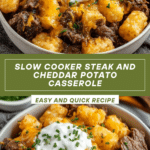 This Slow Cooker Steak and Cheddar Potato Casserole is a hearty and comforting dish perfect for busy days. Tender steak, creamy potatoes, and melted cheddar combine for a satisfying meal that requires minimal effort.