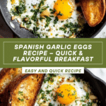 Keywords: Spanish garlic eggs, garlic eggs recipe, fried eggs with garlic, parsley garlic sauce, simple breakfast recipe, Spanish cuisine