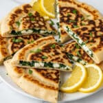 This easy Gozleme recipe features a simple yogurt-based dough filled with a flavorful mixture of fresh spinach and feta cheese. Cooked on the stovetop to a golden crisp, these delicious Turkish-style stuffed flatbreads make a quick, satisfying meal perfect for any time of day.