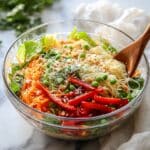 Spring Roll Salad with Spicy Ginger Dressing is a vibrant and refreshing dish combining fresh vegetables, rice vermicelli noodles, and a bold, zesty spicy ginger dressing. This salad captures the essence of classic spring rolls in an easy-to-prepare, colorful salad form, perfect for healthy lunches, side dishes, or potluck contributions. With bright flavors and crunchy textures, it’s a delightful and nutritious option that can be customized to fit various dietary preferences.