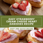 These Strawberry Cream Cheese Heart Danishes are a charming and delicious treat perfect for breakfast or dessert. With flaky puff pastry, creamy filling, and fresh strawberries, they’re as beautiful as they are tasty. Ready in just 40 minutes, they make any occasion special.