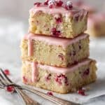Strawberry Lemon Blondies are pretty pink bars bursting with the sweet, tart flavors of fresh strawberries and bright lemon juice. These moist, dense blondies have a soft, melt-in-your-mouth texture reminiscent of soft shortbread, enhanced by juicy pockets of fresh diced strawberries and finished with a naturally colored strawberry lemon glaze that’s both visually stunning and delicious. Perfect for spring or any occasion when you crave a quick, easy, and irresistible fruity dessert.