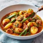 Swamp Potatoes and Sausage is a hearty, flavorful dish that combines tender potatoes, smoky sausage, and fresh green beans with Cajun spices. This comforting one-pot meal is perfect for a cozy family dinner and pairs wonderfully with crusty bread to soak up the delicious juices.