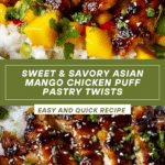 These Sweet & Savory Asian Mango Glazed Chicken Twists are a perfect blend of fruity sweetness and savory spices wrapped in flaky puff pastry. Easy to make and full of flavor, they’re ideal for snacks, appetizers, or a fun meal.