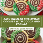 These Swirled Christmas Cookies are festive, buttery, and beautifully marbled with chocolate, making them perfect for holiday gatherings. The cookies combine a classic vanilla dough with a rich cocoa swirl, decorated with powdered sugar and colorful sprinkles to add a cheerful holiday touch.