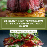This elegant appetizer features tender cubes of beef tenderloin served on crisp potato slices, complemented by a tangy horseradish cream and delicate chive blossoms. It’s a perfect combination of textures and flavors that you can prepare in just 30 minutes.