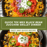 A quick and flavorful Tex-Mex Black Bean Zucchini Skillet that celebrates fresh summer zucchini with pantry staples like black beans, corn, and salsa. This one-pan dish is easy to prepare, perfect for a wholesome meatless dinner with vibrant flavors and a cheesy finish.