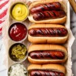 - Step 6: Remove and top with your favorite condiments like ketchup, mustard, relish, or sauerkraut.