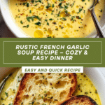 This Traditional Country French Style Garlic Soup transforms a whole head of garlic into a warm, comforting, and mellow soup with rich flavors. Featuring roasted garlic, aromatic sage, and a creamy emulsion of egg yolk, Dijon mustard, and olive oil, this rustic French recipe is simple yet elegant. Perfect for cozy evenings, it is quick to prepare and serves as a satisfying meal especially when paired with crusty bread or a light salad.