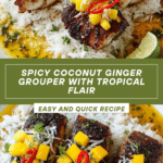 Tropical Grouper with Spicy Coconut Ginger sauce is a vibrant and flavorful dish that captures the essence of island cuisine. Tender grouper fillets are seared to perfection and topped with a creamy, spicy sauce infused with fresh ginger, chili, and coconut milk. This recipe is perfect for a quick yet impressive dinner.