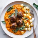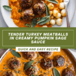 Keywords: turkey meatballs, pumpkin sage sauce, fall recipe, creamy sauce, comfort food, healthy meatballs, Italian seasoning, autumn dish