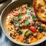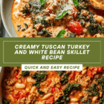 This Tuscan Turkey and White Bean Skillet is a hearty, flavorful one-pan meal featuring ground turkey simmered with aromatic herbs, fire-roasted tomatoes, creamy white beans, and nutrient-rich kale. Finished with a touch of cream and Parmesan cheese, it creates a comforting, rustic dish perfect for an easy weeknight dinner served alongside crusty bread.