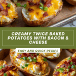 Twice baked potatoes are a comforting classic that transform simple baked potatoes into a creamy, cheesy delight. Perfect as a side dish or a hearty snack, this recipe combines smooth mashed potato filling with savory toppings for a deliciously satisfying treat.