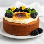 This Vanilla Creme Brulee Cake is a luxurious dessert combining a moist vanilla sponge cake with a rich, creamy vanilla custard topping that is caramelized to perfection. The luscious creme patissier custard is infused with real vanilla pods and spreads smoothly over the spongy base, creating a delightful contrast of textures and flavors. Finished with a crisp burnt sugar shell and optional fresh blackberries, this elegant cake is perfect for special occasions or a decadent treat.