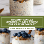This Vanilla Overnight Oats recipe is a creamy, nutritious, and convenient breakfast option that combines rolled oats with vanilla bean Greek yogurt, chia seeds, and a hint of maple syrup. Prepared the night before, it offers a creamy texture and naturally sweet flavor, perfect for a quick and healthy start to your day.