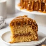 - Make the glaze: In a medium bowl, whisk together the powdered sugar, Biscoff spread, non-dairy milk, and vanilla extract until smooth. Cover and set aside. Once the cake is fully cooled, drizzle the glaze generously over the top.