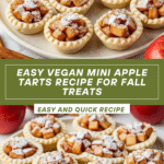 Delight in these charming Mini Apple Tarts featuring tender apple filling enveloped in a crisp, buttery vegan shortcrust pastry. Sweetened naturally with brown sugar and spiced with cinnamon, these tarts make for the perfect cozy dessert or snack, suitable for vegans and apple lovers alike.