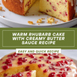 This Warm Rhubarb Cake with Butter Sauce is a delightful dessert featuring tender rhubarb pieces baked within a moist cake, complemented by a rich and creamy butter sauce. Perfectly balanced with sweet and tangy flavors, this cake is ideal for serving warm with a luscious sauce poured on top, making it a comforting treat for any occasion.