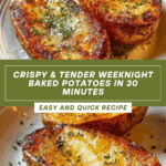 Keywords: weeknight baked potatoes, quick baked potatoes, crispy baked potatoes, russet potatoes, easy side dish, buttered potatoes, seasoned potatoes, oven baked potatoes