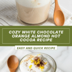 Warm up your winter with a luxurious White Chocolate Orange Almond Cocoa that combines creamy white chocolate, zesty orange, fragrant cinnamon, and nutty almond paste into a decadent hot chocolate ganache. Infused overnight for intense flavor, this indulgent drink is easy to prepare and can be enjoyed any time, topped with whipped cream, cinnamon, and fresh orange zest.