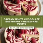 This White Chocolate Raspberry Cheesecake is a decadent and visually stunning dessert combining creamy white chocolate cheesecake with vibrant swirls of tart raspberry puree. Featuring a graham cracker crust, it offers a perfect balance of sweetness and tanginess, ideal for any special occasion or dessert craving.