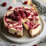 This White Chocolate Raspberry Cheesecake is a decadent and visually stunning dessert combining creamy white chocolate cheesecake with vibrant swirls of tart raspberry puree. Featuring a graham cracker crust, it offers a perfect balance of sweetness and tanginess, ideal for any special occasion or dessert craving.